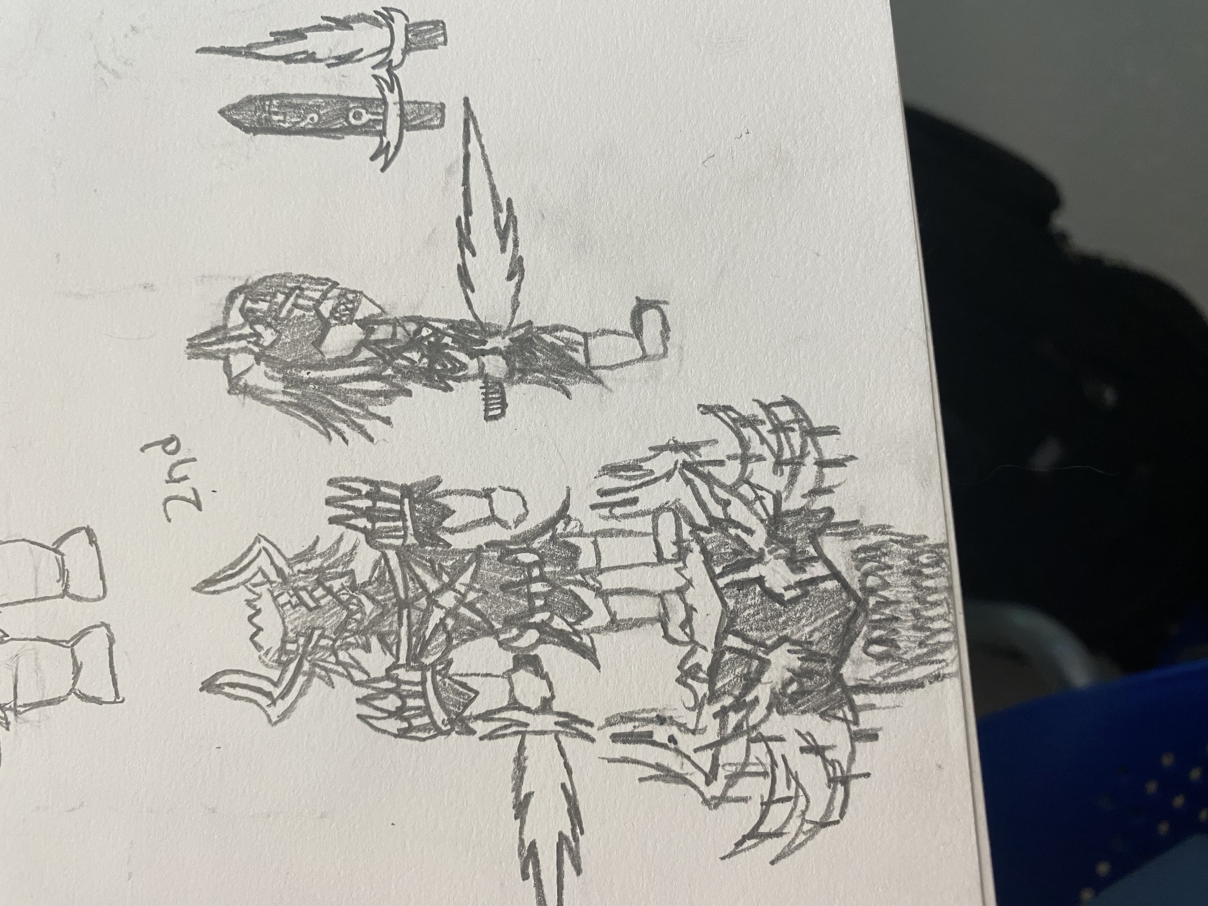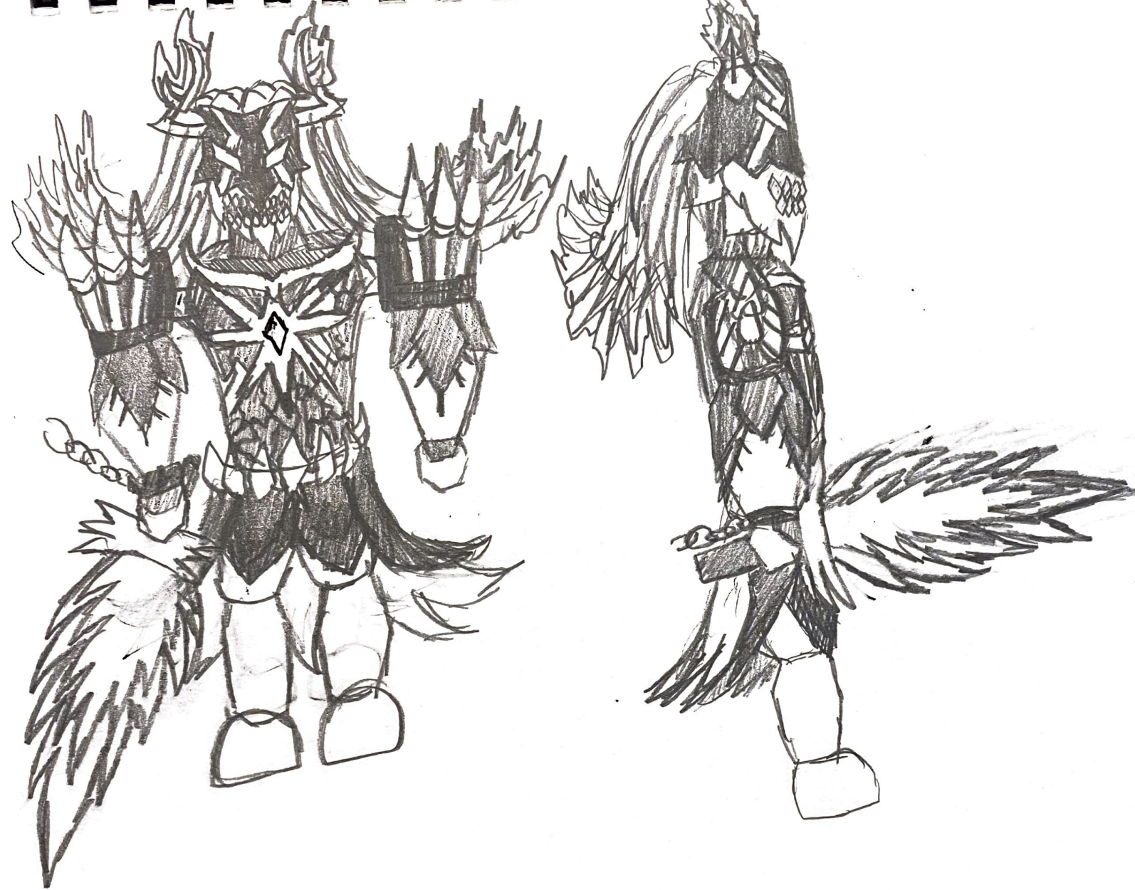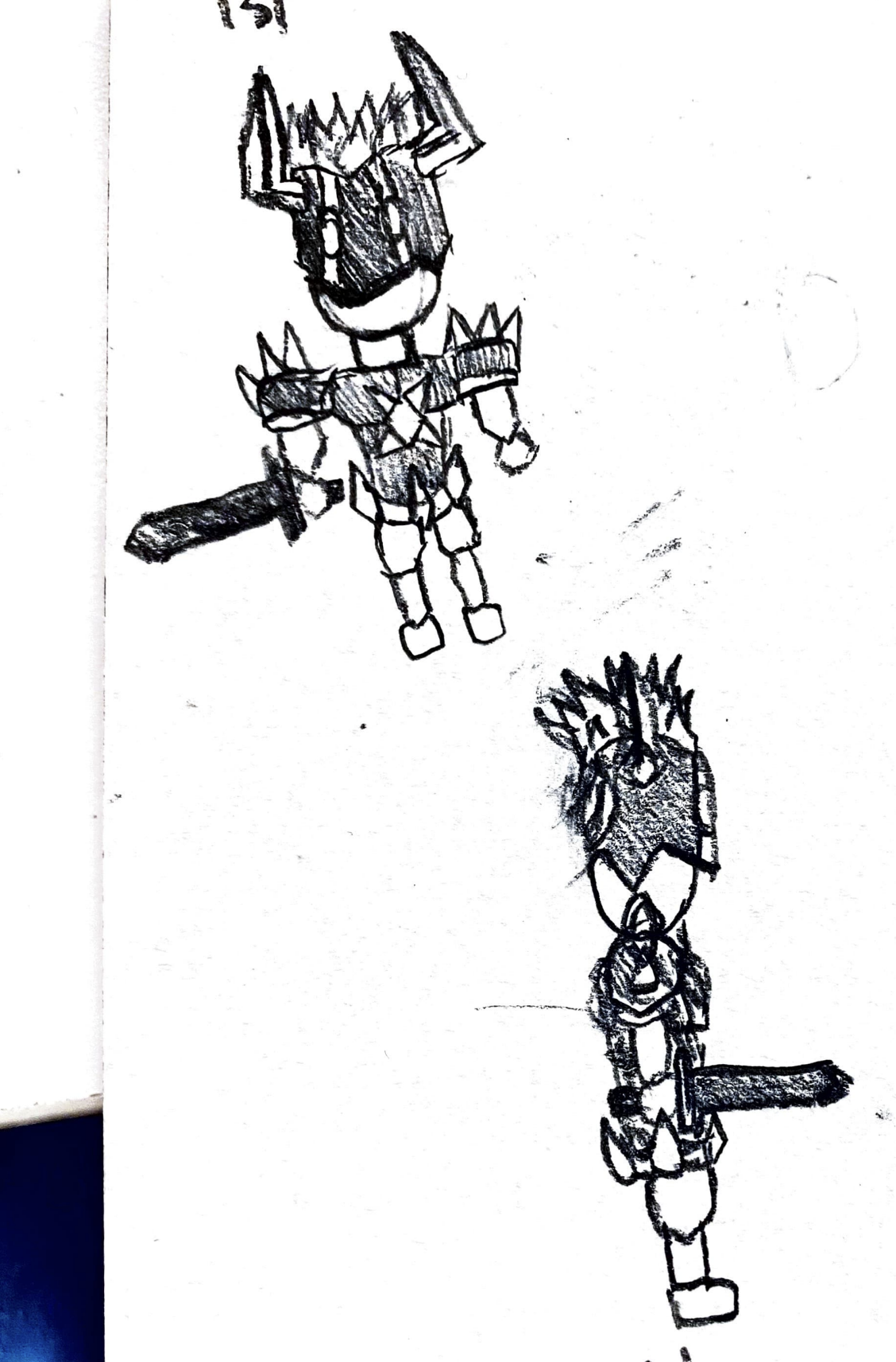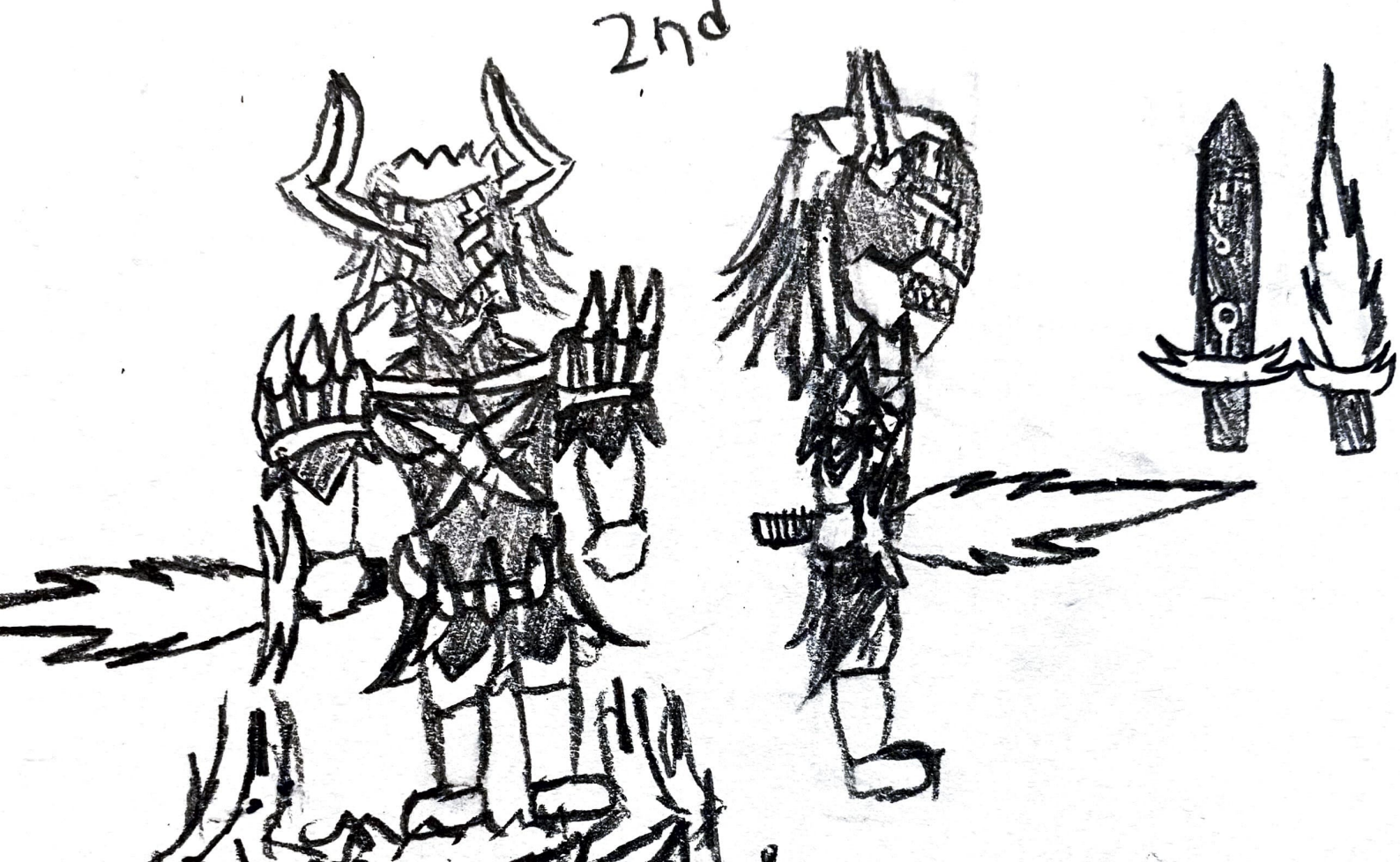 I decided to make a fire elemental character. This fella I made is a fire blob who found armour and now wears it, then it progresses into a giant with a flame sword and fiery armour. It's based on Surtr, a Fire Giant in Norse Mythology